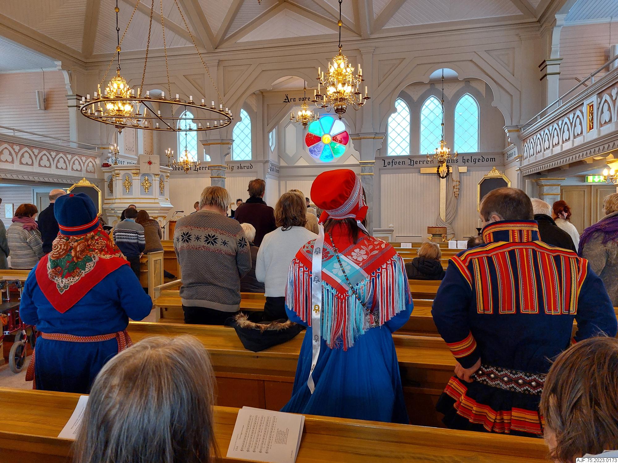 Samiska högmässan som tradtionsenligt avslutar Jokkmokks marknad. I Nya kyrkan i Jokkmokk.
