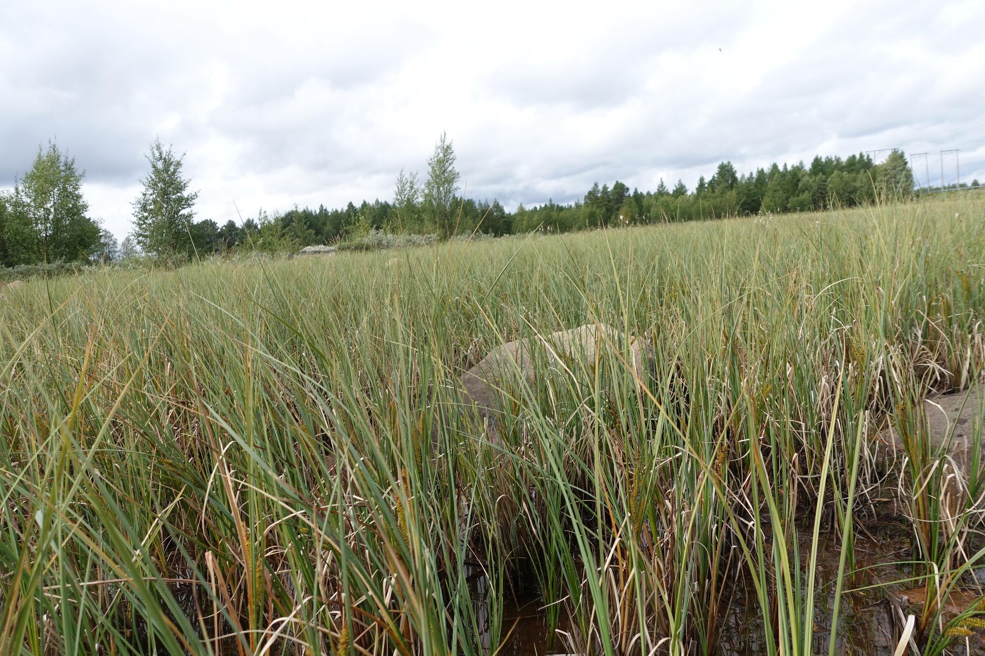Biotopbild av flaskstarrbestånd. På torrare ställen förekommer dytåg.