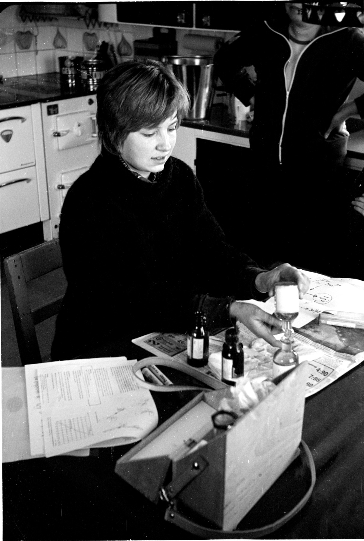 Ekologilärare Kerstin Calgren demonstrerar hur man gör ett vattenprov inför eleverna och hemma hos Hjalmar Öberg