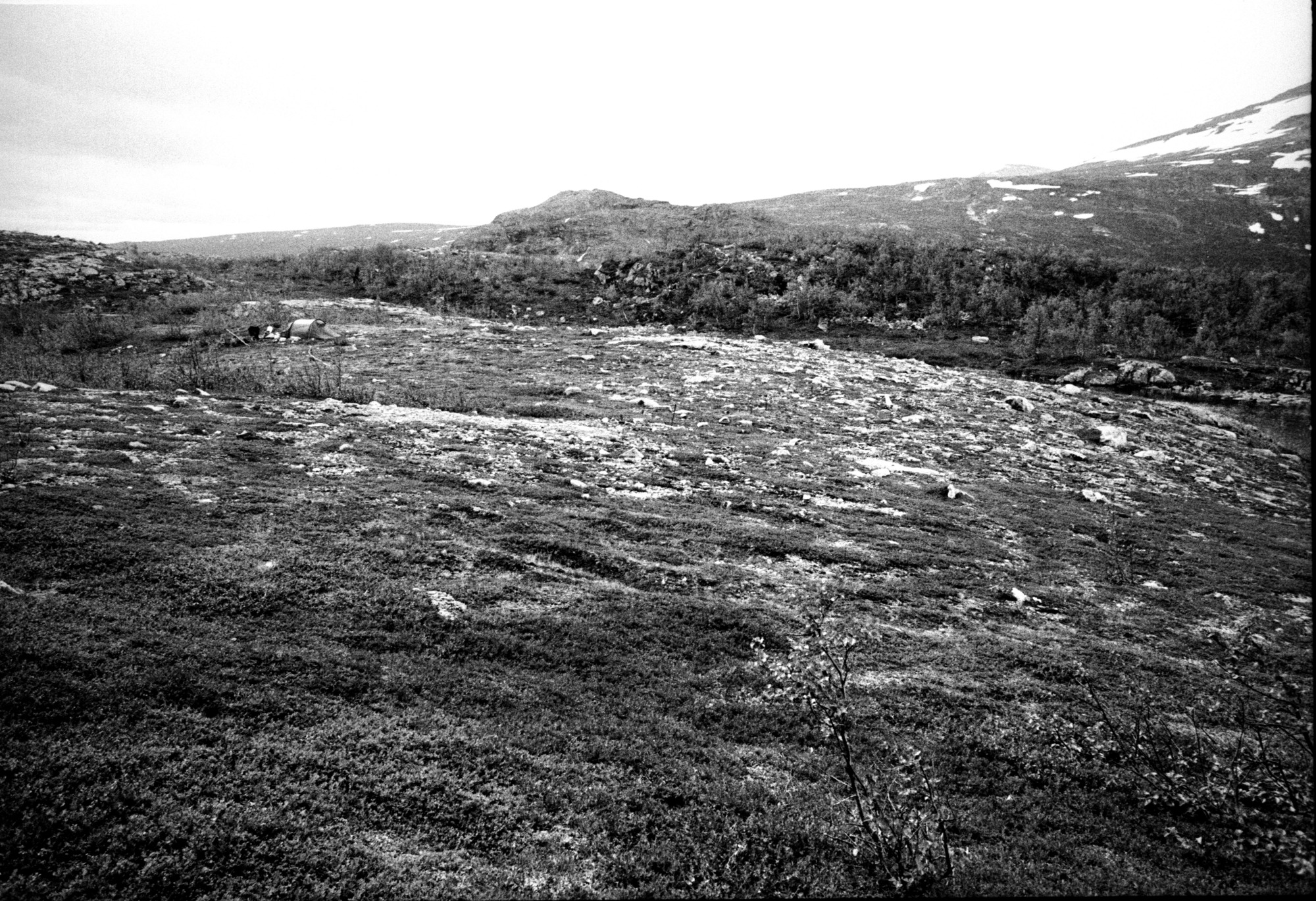 Vy över Vattenfalls läger-och uppläggningsplats nära till tjärnen söder om Ruotevares höjd