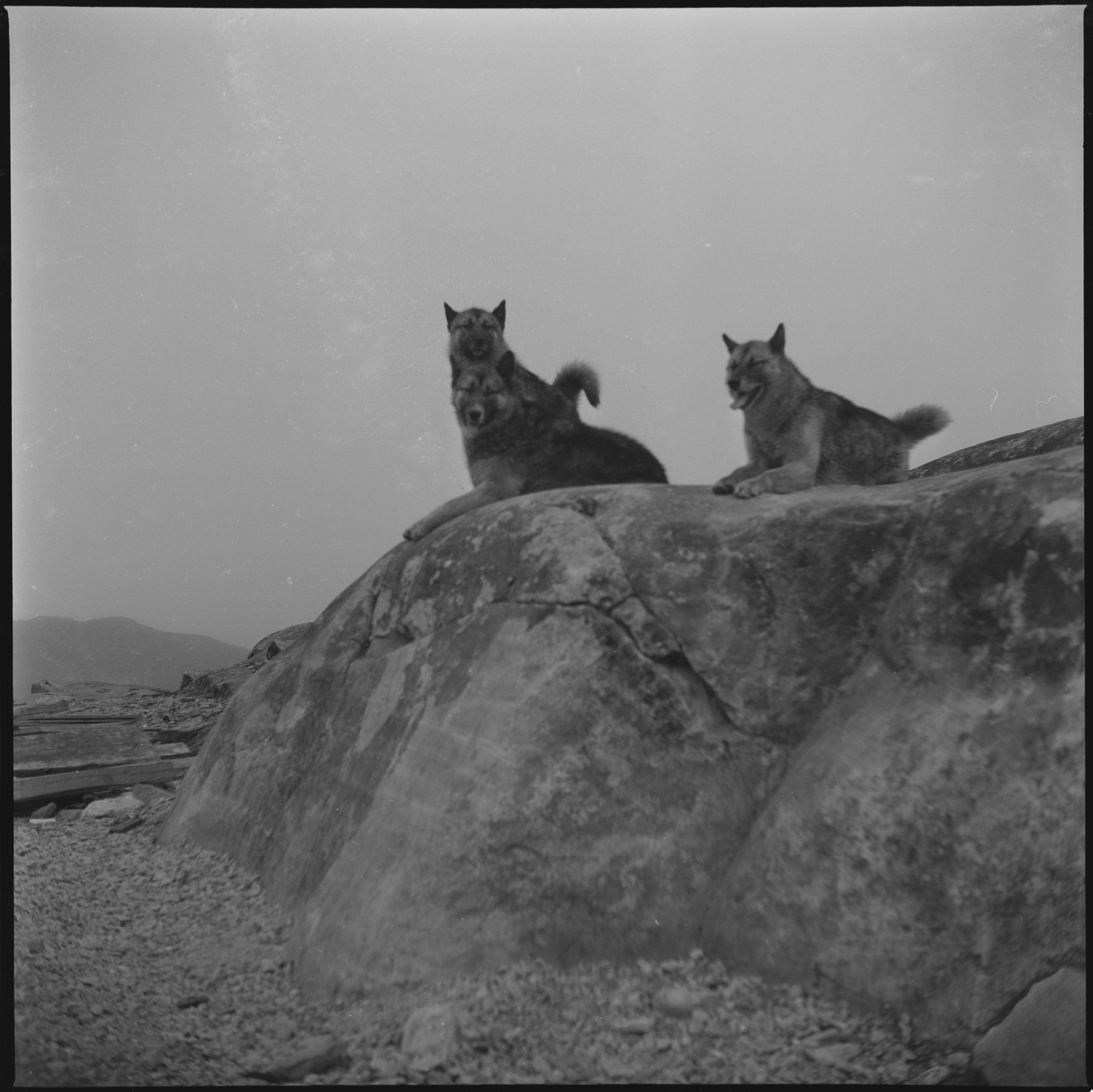 SameF:80:00597 :: hundar, djur, draghundar, berg, klippa, sommar