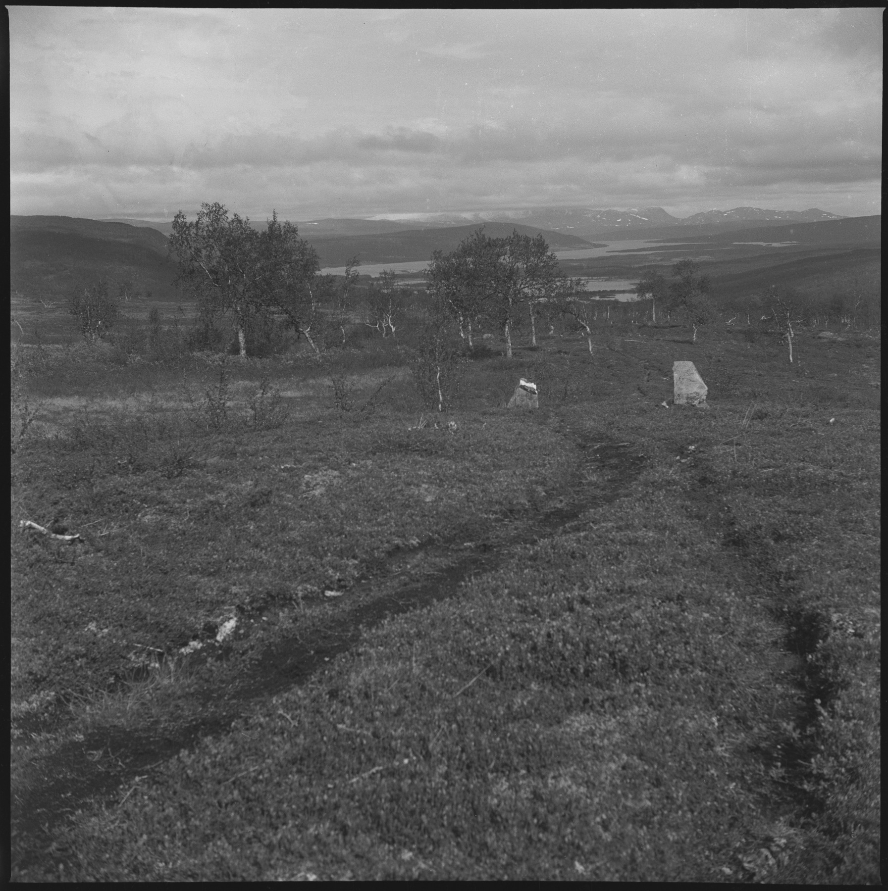 SameF:80:00186 :: fjäll, björk, stig, vägmärke, sjö